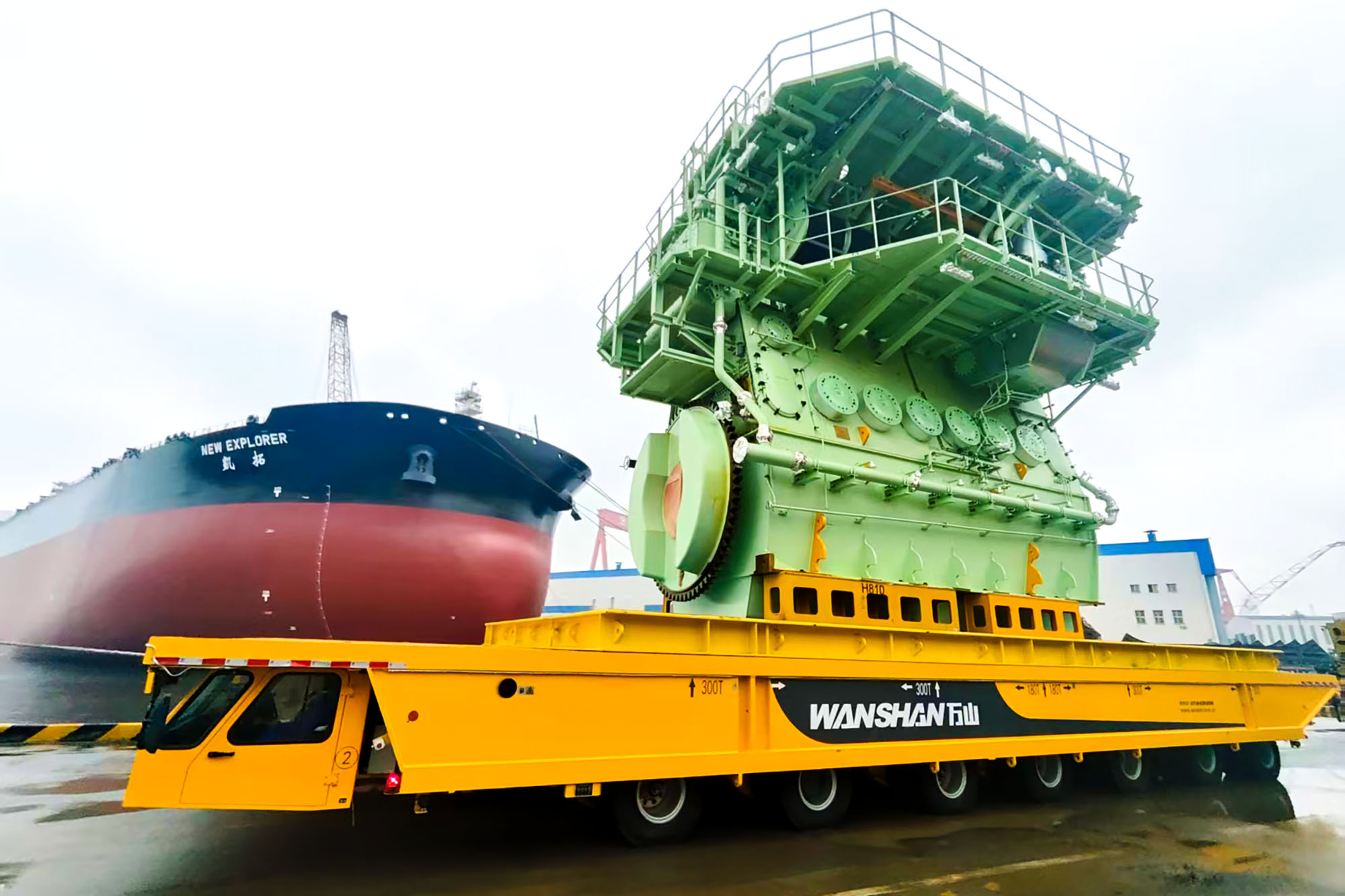 10月11日,搭载6G60MEC#56主机的600吨平板车缓缓驶出大连船柴总装制造部大门,标志着该公司首次实现了该型主机整机发运,主机发运工艺迈上新台阶。